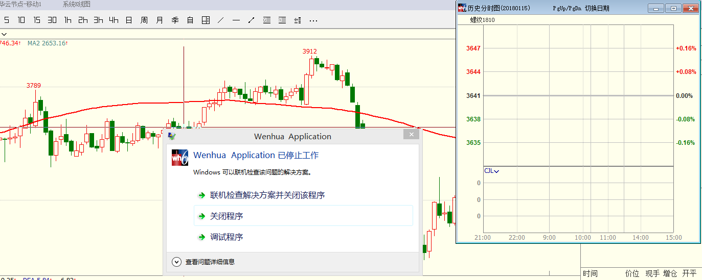 [求助]关于电脑版历史分时图出现不久后软件关闭的问题 (文华财经WH6赢顺V6.7)投资者咨询:[求助]关于电脑版历史分时图出现不久后软件关闭的问题 (文华财经WH6赢顺V6.7)来源:文华财经 日期:2018-5-8 4:17 软件调出某一品种某一日线时段的分时图后不久就会出现系统提示调试或关闭软件的窗口,总是不能持续调出分时图,请求原因,谢谢! 附图技术人员回复日期:2018-5-8 8:00 类似问题我们已经查到并优化 请关注下次升级的版本,会解决