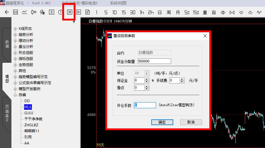 可以设置的,参考下图位置点击“重设回测参数”按钮后可以设置