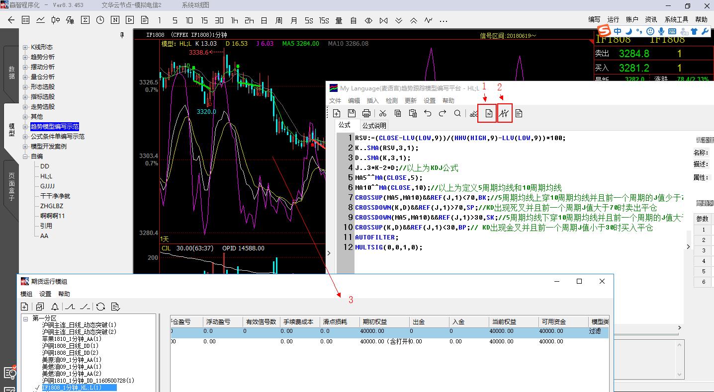 设置好后在主图加载模型进行回测就可以,回测完成后右键》装入到模组运行就可以