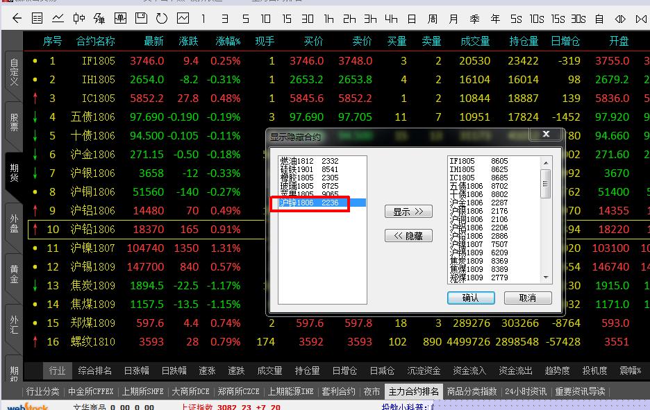 当时 是可以隐藏,但点了其它菜单后,再返回点郑商所,上期所的标签再点主力合约又显示了,大商就不会