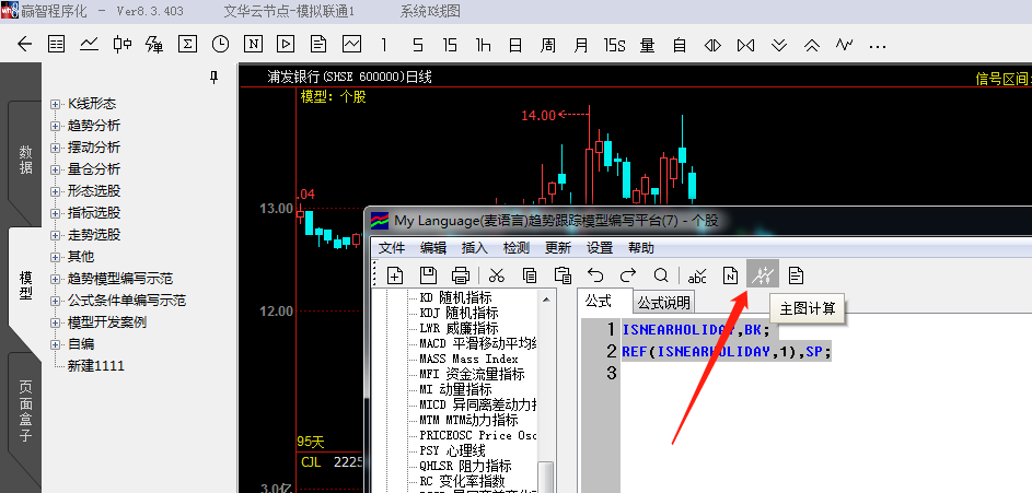 请教老师程序化 (文华财经WH8赢智V8.2)投资者咨询:请教老师程序化 (文华财经WH8赢智V8.2)来源:文华财经 日期:2018-5-6 10:07 确认按钮都找不到?有程序化步骤这方面的视频没有?是不是这样弄的?谢谢怎样启动回测? 技术人员回复日期:2018-5-6 12:11 参考下图,选择对应合约后》点击上方主图回测按钮来进行回测 您刚接触软件右上角》帮助》软件说明书》有模型回测的详细图文教程您可以学习一下