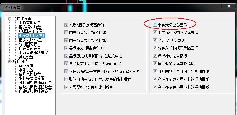 十字线设置问题 (文华财经WH6赢顺V6.7)投资者咨询:十字线设置问题 (文华财经WH6赢顺V6.7)来源:文华财经 日期:2018-8-14 8:10 当把鼠标暂时放置到K线上的时候,就会出现白色的纵横十字线,在K线上的部分是隐藏在K线后面,看不清楚。从哪里进行设置,让这个十字线出现在K线的表面,以便于清楚观察呢?技术人员回复日期:2018-8-14 8:17 右上角》个性化》个性化设置,参考截图位置取消勾选即可投资者咨询:十字线设置问题 (文华财经WH6赢顺V6.7)来源:文华财经 日期:2018-8-14 8:10 感谢快速回复!学习了!
