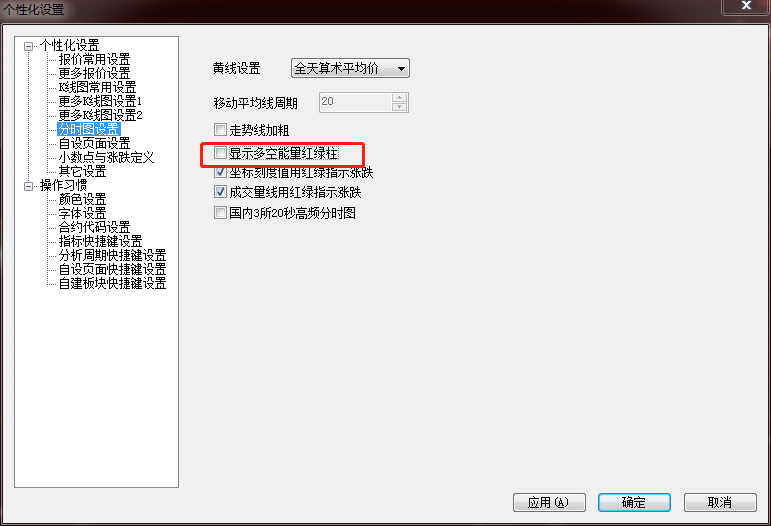 截图反映软件问题 (文华财经WH6赢顺V6.7)投资者咨询:截图反映软件问题 (文华财经WH6赢顺V6.7)来源:文华财经 日期:2018-5-5 17:59分时图上的红绿柱怎么去除? 文件名:screenshot20180505175812.png技术人员回复日期:2018-5-5 18:49 软件右上角》个性化》个性化设置,取消勾选显示红绿柱即可