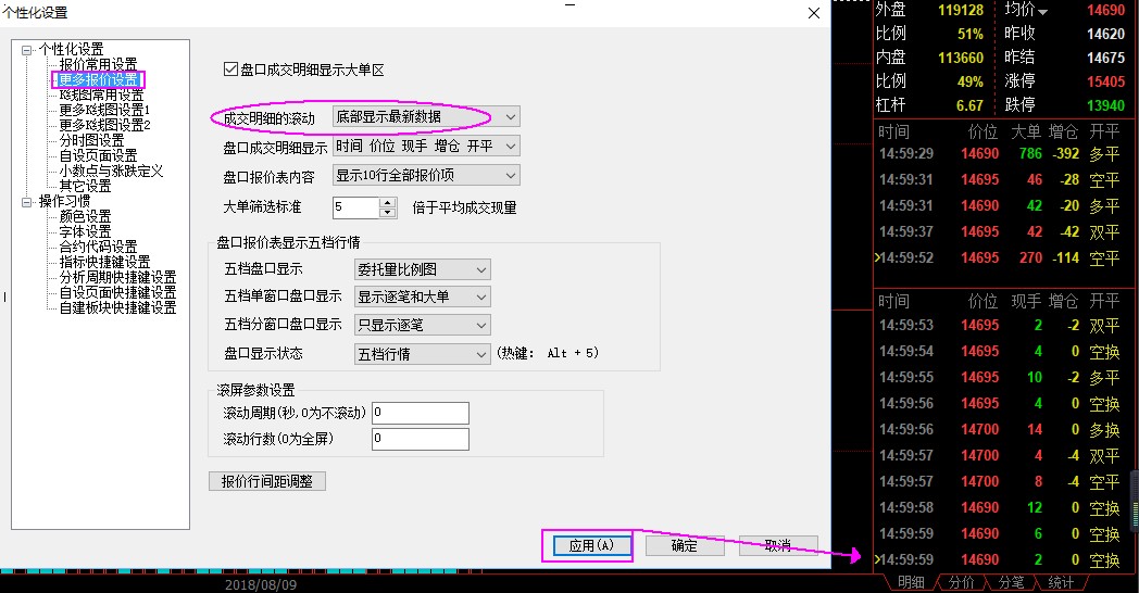 谢谢,只知道弄k线图,这个没有注意。现在的成交明细和以前不一样,刚刚成交在上面,以前是从上面往下面成交排列。