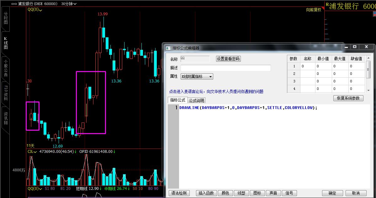 投资者咨询:请教老师一个画竖线的公式 (文华财经WH6赢顺V6.7)