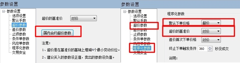 在wh8程序化中使用超价,需要先在交易参数设置》超价参数中设置,然后在程序化参数中将默认下单价格设置为超价