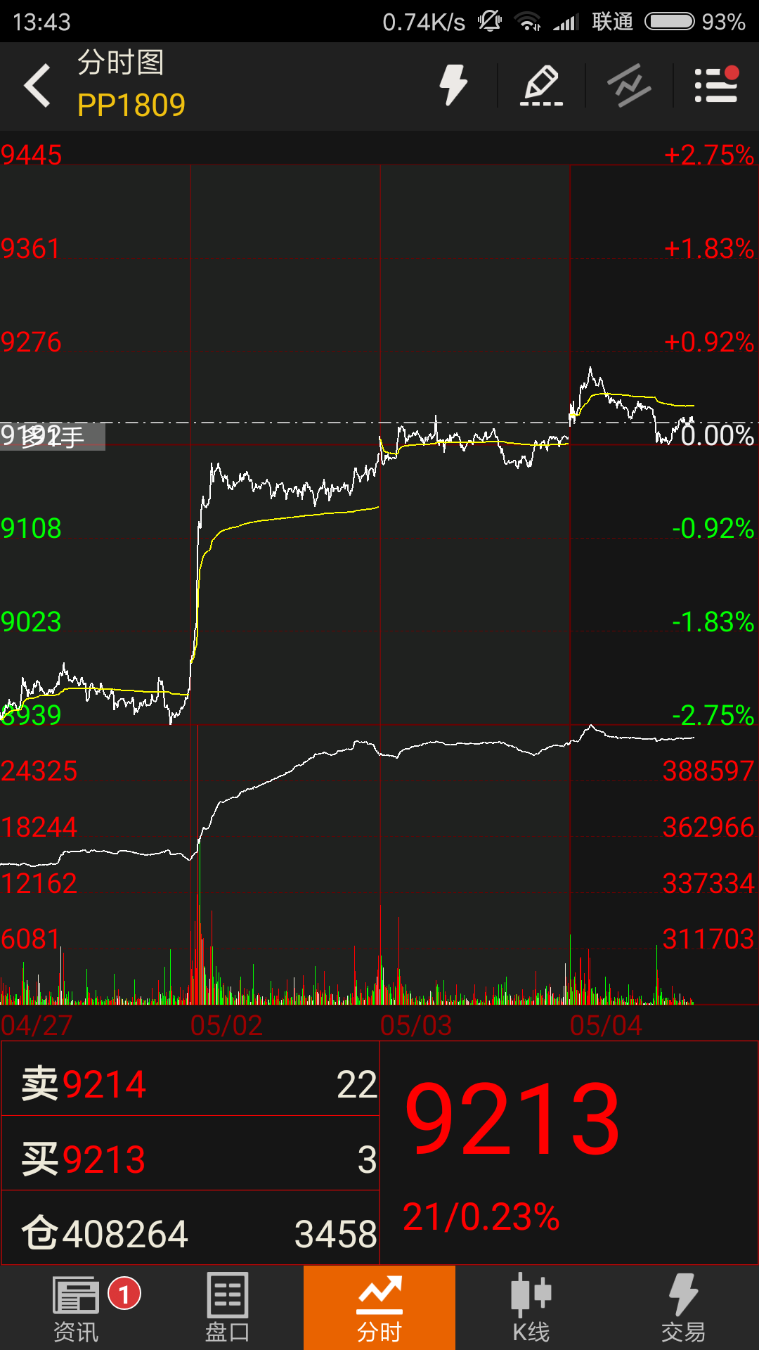 还有一个问题?就是文华随身行上的分时图显示的是几天的分时-怎么设置几天的和当天分时图切换?