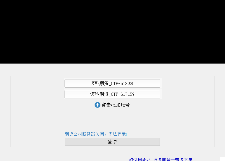 截图反映软件问题 (文华财经WH8赢智V8.2)投资者咨询:截图反映软件问题 (文华财经WH8赢智V8.2)来源:文华财经 日期:2018-5-3 20:14单账号可以为什么我的多账号模块登不上我已经买了模块的之前用的好好地 文件名:screenshot20180503201253.png技术人员回复日期:2018-5-3 20:17 这个提示应该是期货公司关闭了交易后台,单个账号登录,现在应该也是登不上的 您等开盘前再登录试下