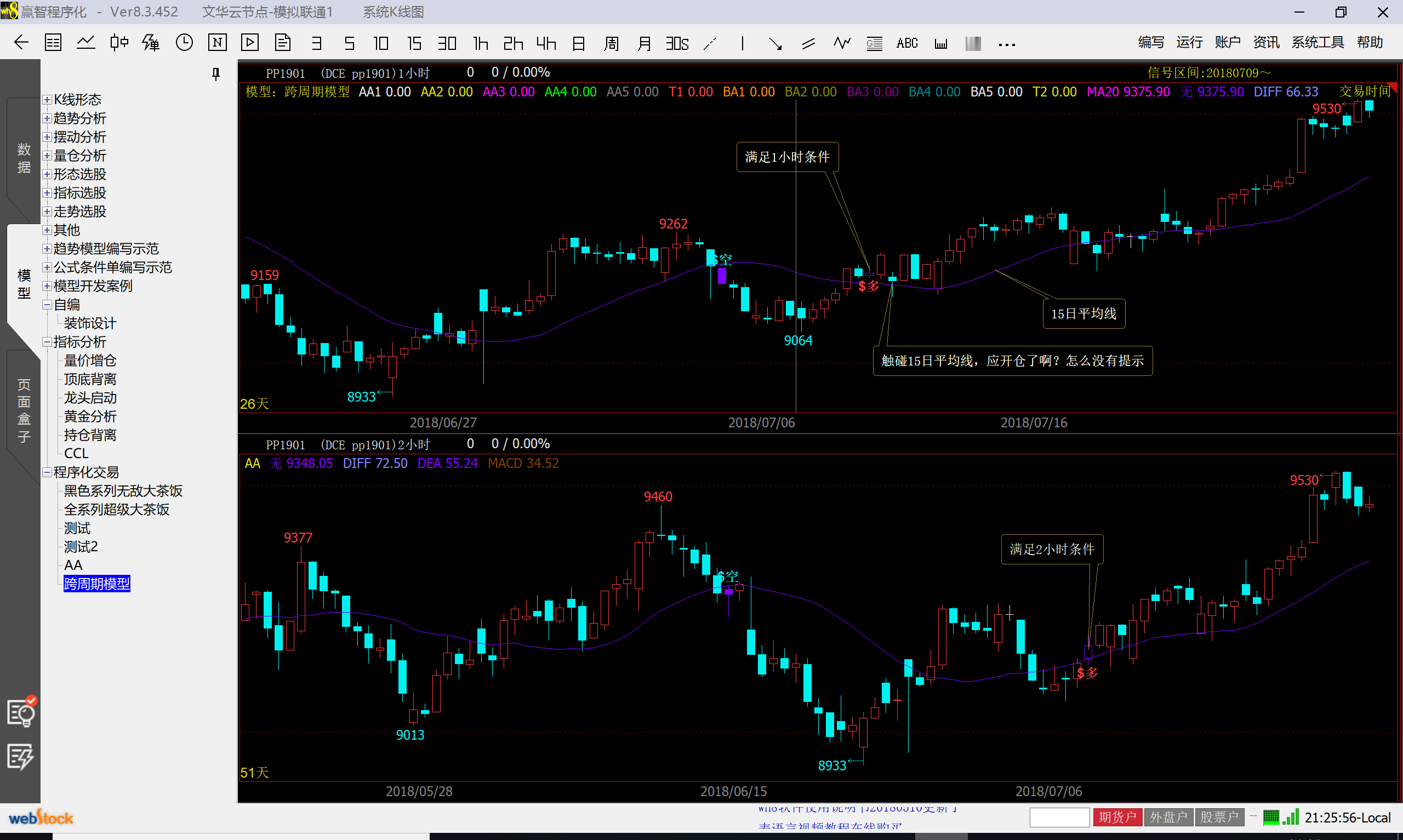 可以在对比K线图,右键切换显示引用的周期的,您试下