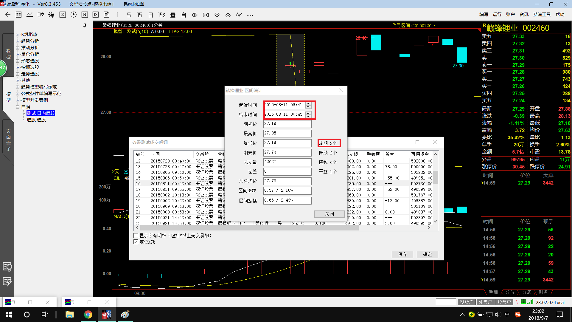 002460的分钟级数据有点问题 (文华财经WH8赢智V8.2)投资者咨询:002460的分钟级数据有点问题 (文华财经WH8赢智V8.2)来源:文华财经 日期:2018-9-7 16:40 这只股票2015年8月11号k线直接从9点41到9点45分,但是我的模型在9点43分开仓了,这里有问题吗。技术人员回复日期:2018-9-7 16:46 9:41~9:45是有k线的,您压缩的太密了,肉眼查看有误差 按键盘向上箭头调整再查看,就不会有疑问了 投资者咨询:002460的分钟级数据有点问题 (文华财经WH8赢智V8.2)来源:文华财经 日期:2018-9-7 16:40 和您的不一样
