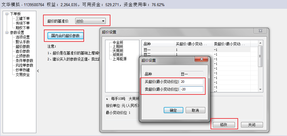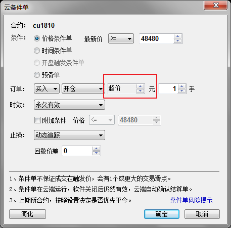 到下单板超价参数,根据需要设置超价基准价和合约超价参数,设置条件单时委托价选择超价就可以了