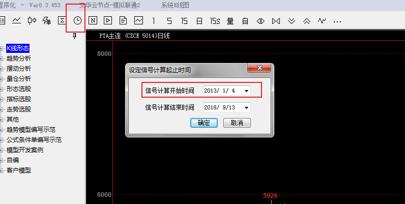 需要注意的是,设置好时间后,由于之前的K线数据已经清除,下次再重新计算历史信号时是不能恢复已经清除的K线数据的