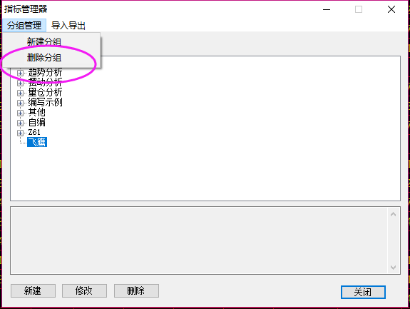 截图反映软件问题 (文华财经WH6赢顺V6.7)投资者咨询:截图反映软件问题 (文华财经WH6赢顺V6.7)来源:文华财经 日期:2018-9-15 16:57老师怎么自建的文件删布了。是什么原因。谢谢 文件名:screenshot20180915165612.png技术人员回复日期:2018-9-15 17:27 您那个飞鹰是一个组的,在分组管理里删除,如图: