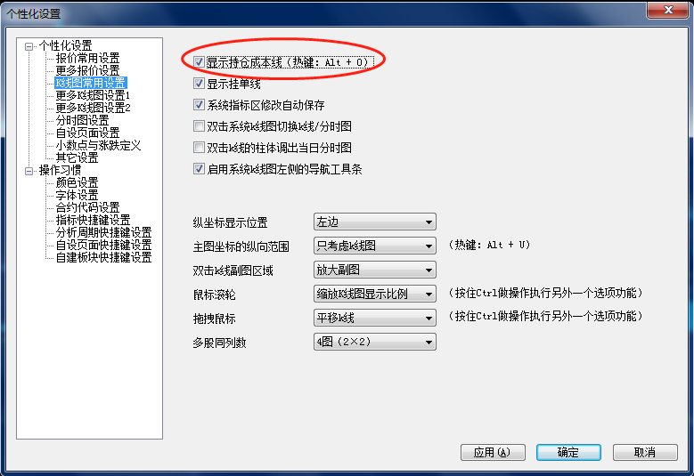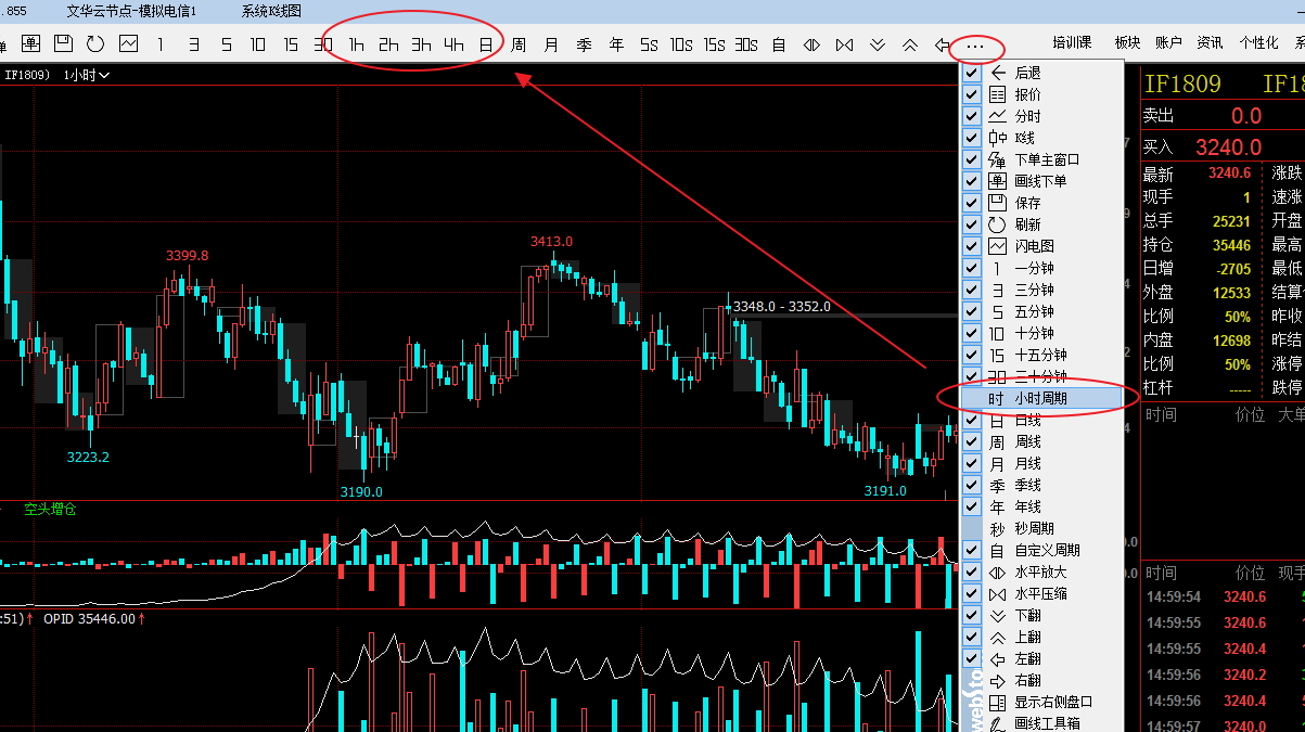 1 希望能有键盘上的两个中括弧号来左右切换K线图的分钟或小时或日线等周期。2 顶栏上的小时周期按钮只有一个,如果同时要一个1小时,加一个2小时周期的按钮无法实现。建议加一个60分钟的按键,小时键可以用来设置2小时或3小时的周期。虽然有个自定义周的,但那个要点开该界面后再去点周期,操作麻烦,而且有出现有小界面碍事。