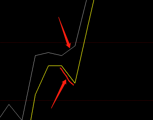 IF(G2>REF(GS,1)&&C<REF(C,1)||G2<REF(GS,1)&&C>REF(C,1),C,NULL),LINETHICK2;