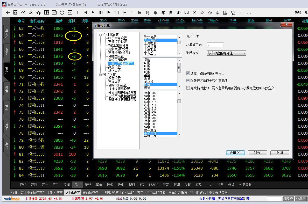 我在个性化里面设置以结算价定义涨跌,但是显示出来的数据是以收盘价来定义的,不解。