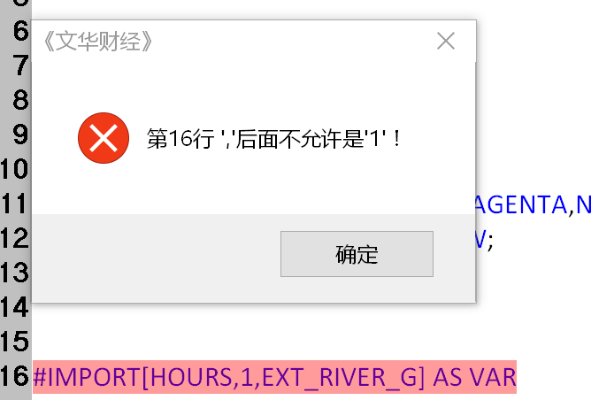 投资者咨询:#IMPORT 函数提示“,后不允许是xx”错误? (文华财经WH6赢顺V6.7)