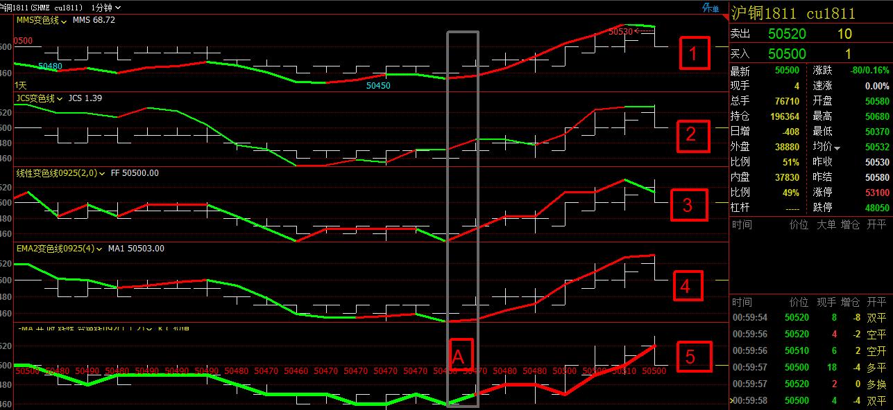 老师好: A/ 请把4项变色线指标,并列改编为一个新的变色线指标。