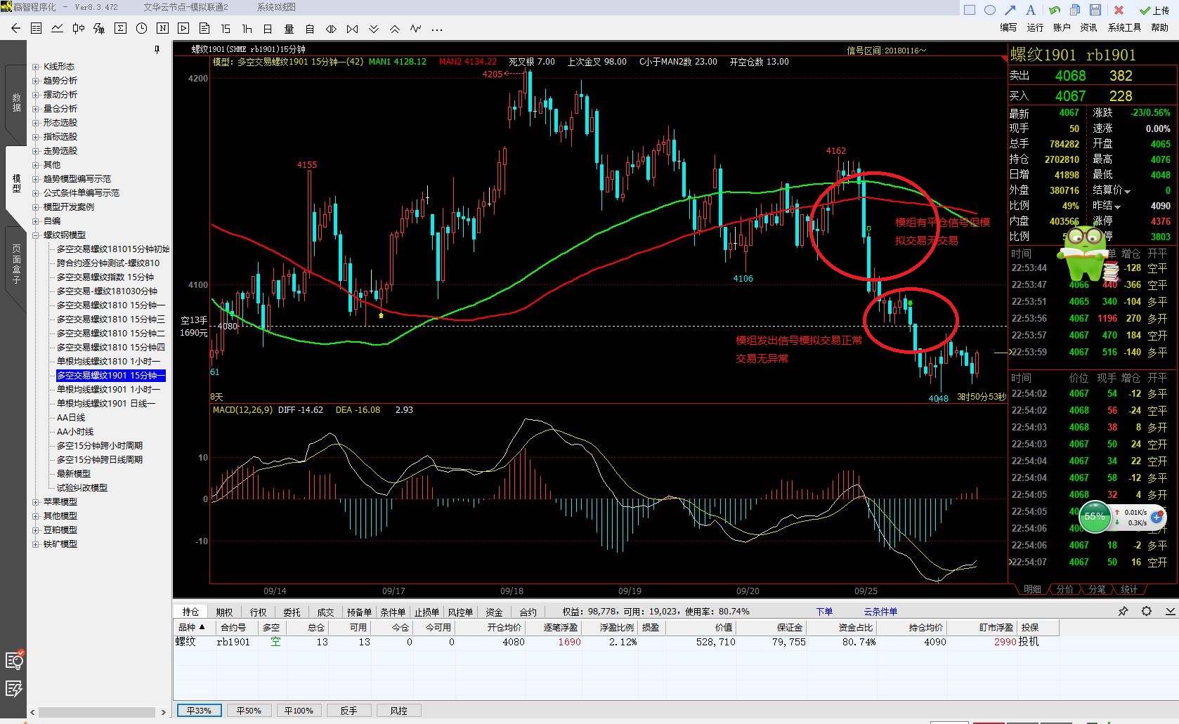 程序化交易不能正常交易问题 (文华财经WH8赢智V8.2)来源:文华财经 日期:2018-9-25 23:06