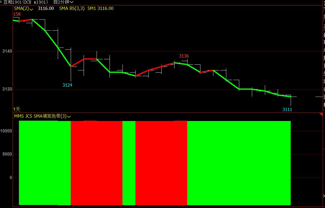 COM:=MMS<REF(MMS,1);//为条件取值,即变色线定位
