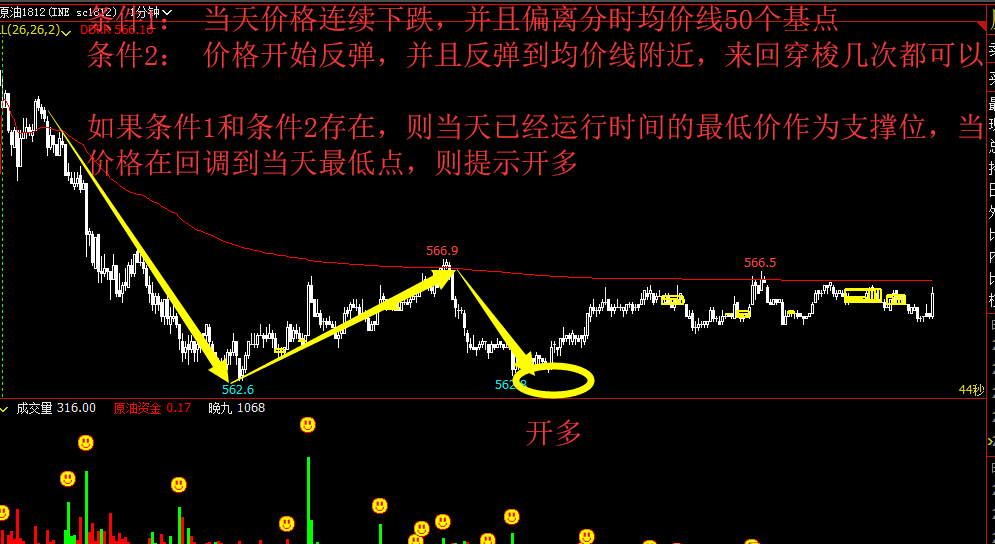条件2: 价格开始反弹,并且反弹到均价线附近,来回穿梭几次都可以