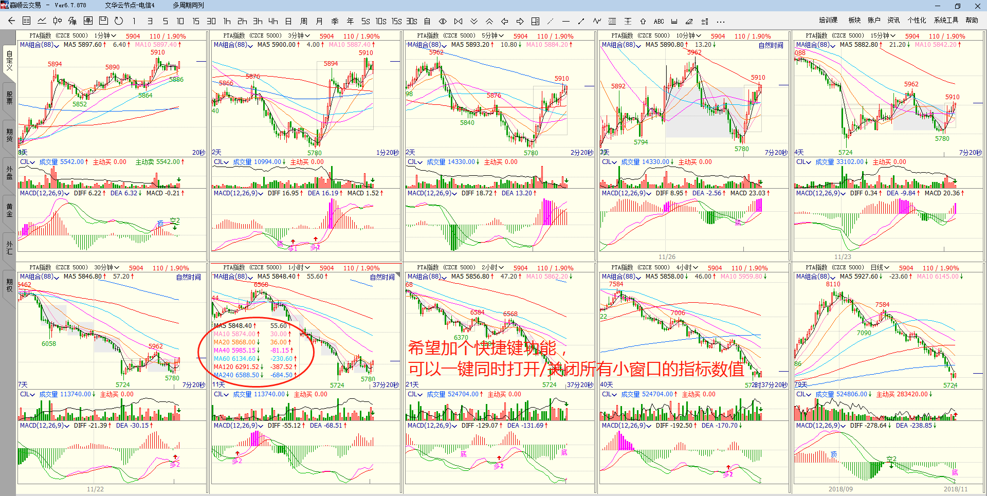 投资者咨询:[建议] 请增加小窗口指标数值快捷键 (文华财经WH6赢顺V6.7)
