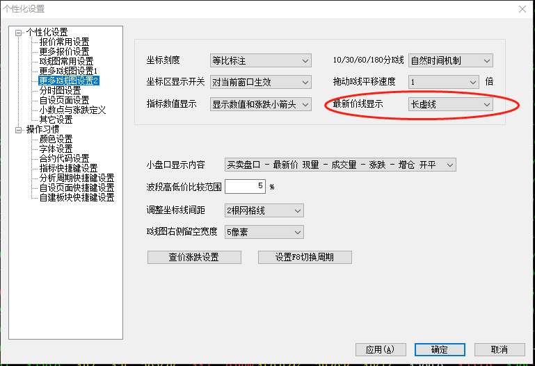 怎样设置变动光标的价格? (文华财经WH6赢顺V6.7)投资者咨询:怎样设置变动光标的价格? (文华财经WH6赢顺V6.7)来源:文华财经 日期:2018-11-28 10:11 怎样设置变动光标的价格?看图圈内,请老师指点技术人员回复日期:2018-11-28 10:19 您是想在最新价线上显示具体的最新价价格? 见下图位置勾选选择长虚线就可以了: