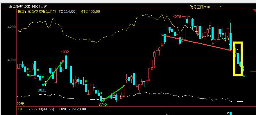 图中圈出鸡蛋指数11月26日 没有满足收盘价下穿LL的