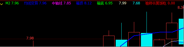 箱顶:MA(REF(HHV(上收,30),1),2),COLOR0000FF,LINETHICK2;