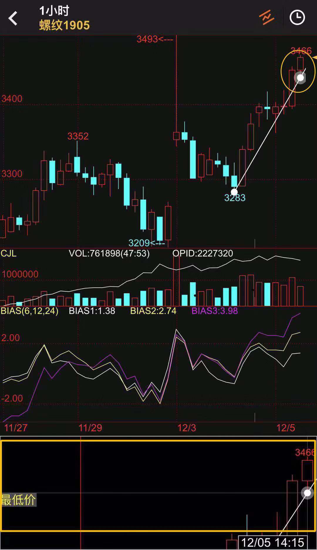 我的意思是说,按标准趋势线的画法,趋势线不能画当到最新价格的地方,(到了手机的边界,画不了,如能把最新价格设计在手机屏幕的中间或可以选择,就可以画趋势线了,)