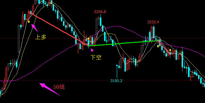 50日上,5日上穿10日开多,开多时K线 开盘价 在5日到10日均线之间 或 5日到50日均线之间,否则不开只提示。
