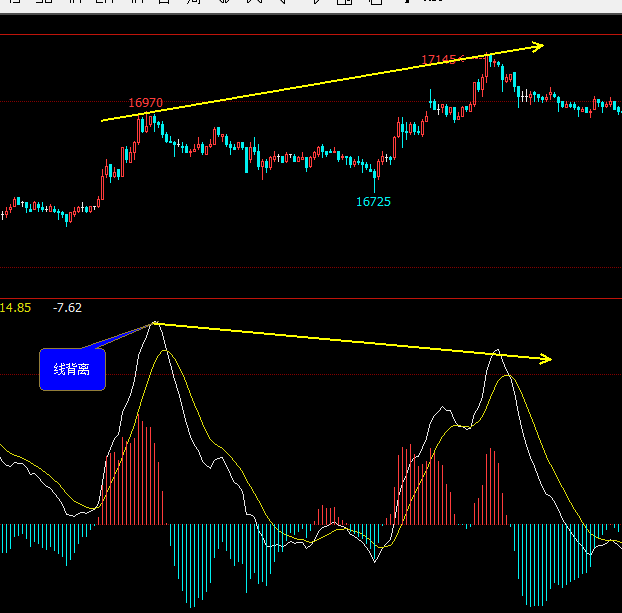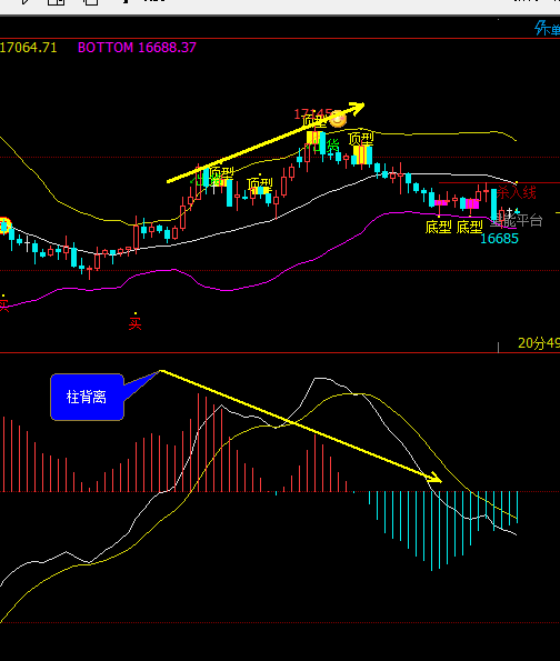 A:=CROSSDOWN(DIFF,DEA)&&HH>HH2&&MHD<MHD2;//顶背离