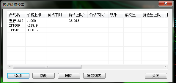 如何查看自己设定好的价格预警值 (文华财经WH6赢顺V6.7)投资者咨询:如何查看自己设定好的价格预警值 (文华财经WH6赢顺V6.7)来源:文华财经 日期:2018-8-23 17:06 如何调出自己设好的价格预警值 技术人员回复日期:2018-8-23 17:16 您是要查看之前自己设置的价格预警吗? 参考下图位置: 投资者咨询:如何查看自己设定好的价格预警值 (文华财经WH6赢顺V6.7)来源:文华财经 日期:2018-8-23 17:06 从哪里调出,找不到技术人员回复日期:2018-8-24 13:30 右上角》系统工具》管理价格预警