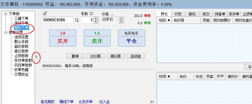 第2点,在打开下单主窗口(空格键)的那一下:我就不止一次的问过自己,期权的持仓哪去了?什么时候平仓的?然后立马又反应过来,是分开显示了造成的看不见,虽然这是一个不该有的低级错误的想法,但是也确实“吓唬”了自己几次了