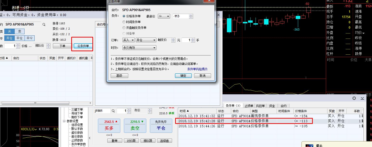 苹果套利对无法设置条件单 (文华财经WH6赢顺V6.7)投资者咨询:苹果套利对无法设置条件单 (文华财经WH6赢顺V6.7)来源:文华财经 日期:2018-12-19 15:39 老师你好 苹果1901-1905套利对无法设置条件单 确认键点击不了技术人员回复日期:2018-12-19 15:45 我们本地测试是正常的 在右上角》账户》期货户》套利下单,这里点击云条件单来设置标准套利条件单 您具体是如何设置的?设置不了是否有什么提示?其他标准套利合约是可设置的,只有该合约不行?