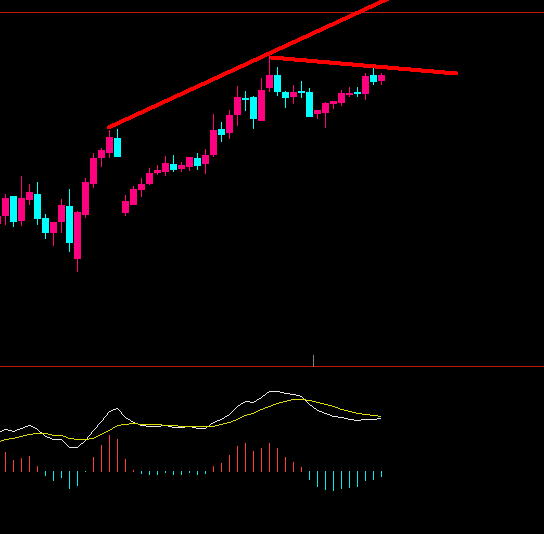 1楼就是根据MACD最近两个完整红柱区间,以及最后一个红柱区间以后的K线,这3段,找到每段的最高价,进行画线