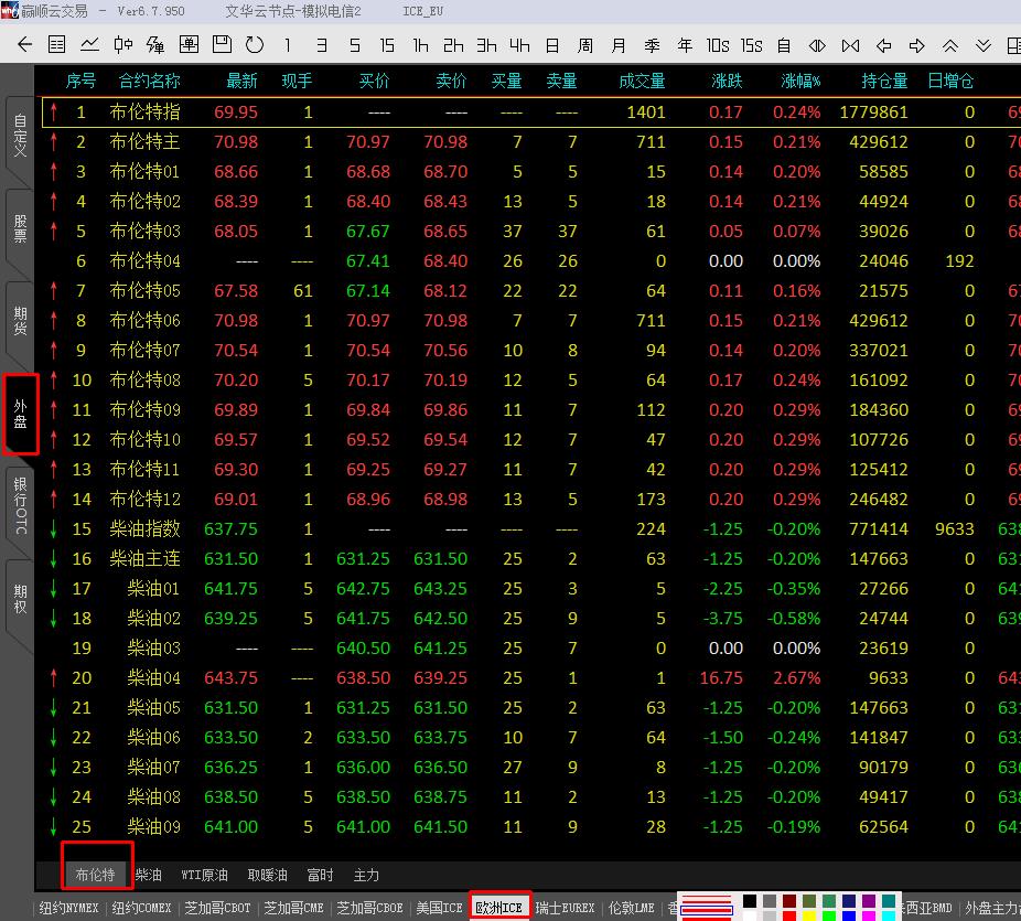 布伦特原油查看 (文华财经WH6赢顺V6.7)投资者咨询:布伦特原油查看 (文华财经WH6赢顺V6.7)来源:文华财经 日期:2019-4-12 8:54 文华软件能看到布伦特油价吗??? 技术人员回复日期:2019-4-12 8:58 可以的,参考截图位置查看