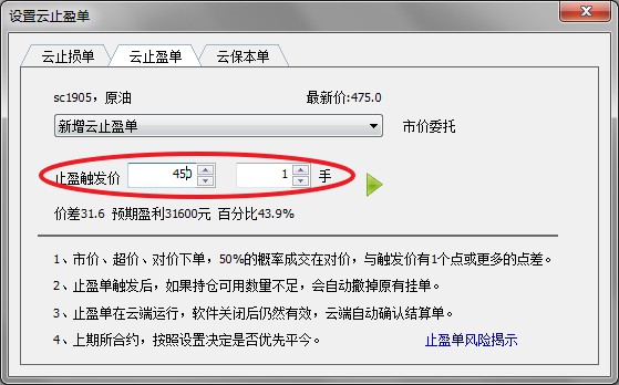 2.能否设置在跌到900的时候止盈自动平仓2手,800的时候止盈自动平仓1手