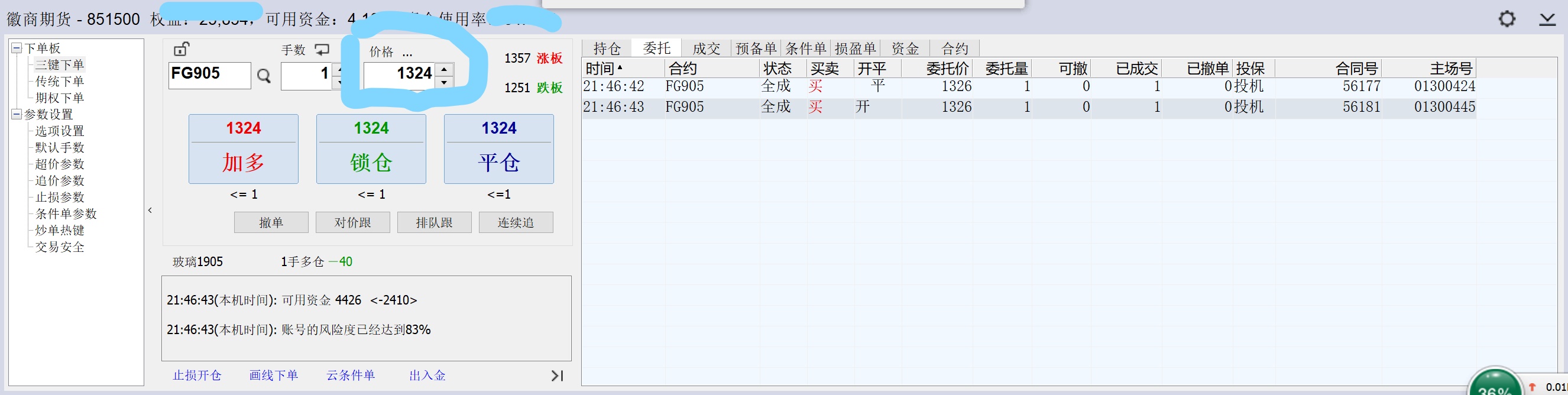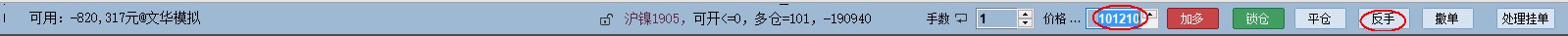 有关反手操作的问题 (文华财经WH6赢顺V6.7)投资者咨询:有关反手操作的问题 (文华财经WH6赢顺V6.7)来源:文华财经 日期:2019-4-11 23:34 想咨询一下老师,反手操作的价格在哪里输入,我的成交价格不是在这个框里输入的价格,我应该在哪里输入?谢谢!技术人员回复日期:2019-4-12 8:05三键下单,反手价格是走默认设置的,不受委托框内价格控制的。在下单板》选项设置中设置您想要指定价格反手操作,可以使用下单工具条来实现,按键盘~调出(ESC键下方) 文件名:23.jpg