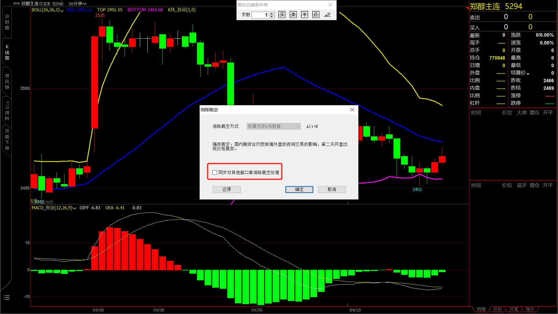 消除跳空疑问 (文华财经WH6赢顺V6.7)投资者咨询:消除跳空疑问 (文华财经WH6赢顺V6.7)来源:文华财经 日期:2019-4-11 20:45 框框里的是啥意思? 技术人员回复日期:2019-4-11 20:50 用于多股同列或者是多周期同列界面 勾选这个选项之后,对一个窗口消除跳空,对所有窗口都有效的 您理解一下