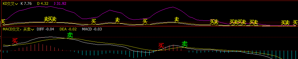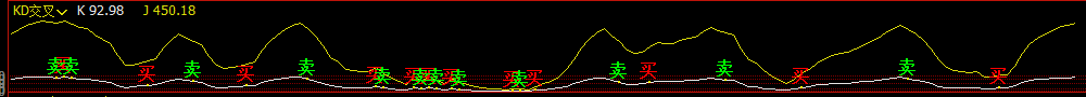 DRAWTEXT(CROSSDOWN(K,D)&&K<REF(K,1),K,'卖'),FONTSIZE20,COLORGREEN;