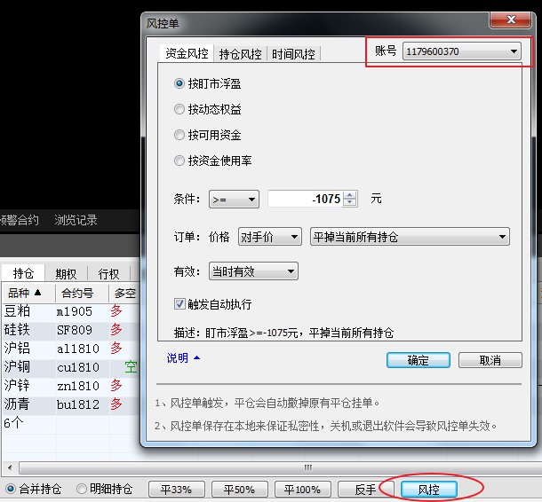 文华7多帐号跟单软件 (文华财经随身行Android 5.4.6(239))投资者咨询:文华7多帐号跟单软件 (文华财经随身行Android 5.4.6(239))来源:文华财经 日期:2018-8-24 0:02 请问我购买这个软件,这个软件如何设置风控技术人员回复日期:2018-8-24 8:19 风控是对整个账户的风险管理,判断的是独立的账户 因为不同的账户资金量不同,风控要求也不尽相同 您登录多账号后,针对不同的账户设置风控策略就可以了,官网下载体验:http://www.wenhua.com.cn/