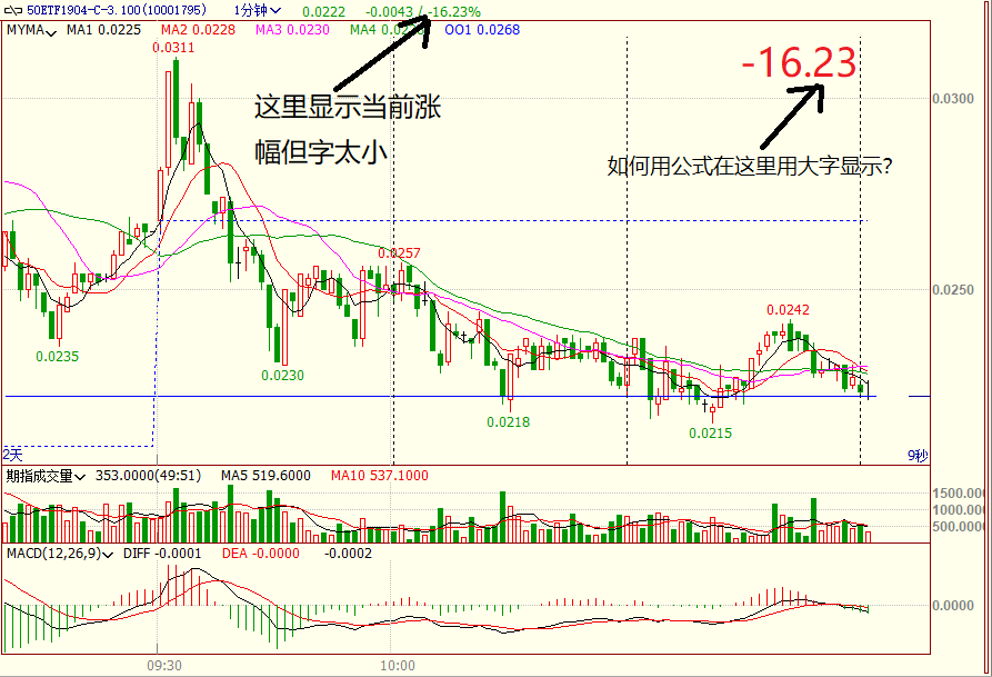 如上图显示,小窗口上方有显示当前涨幅,但这字太小。