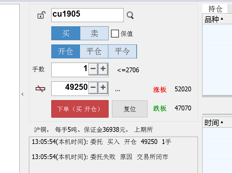 模拟交易交易所闭市 (文华财经WH6赢顺V6.7)投资者咨询:模拟交易交易所闭市 (文华财经WH6赢顺V6.7)来源:文华财经 日期:2019-4-11 13:07交易不了,永远提示交易所闭市是怎么回事呢 文件名:screenshot20190411130612.png技术人员回复日期:2019-4-11 13:08 当前是中午小节休息时间,不能交易的 F10合约资料有交易时间的介绍,您可以看下