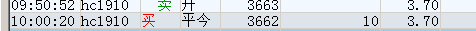 我们对照hc1910的行情看了下,3888是涨停价,所以您设置的应该是市价的方式,发买方向的委托