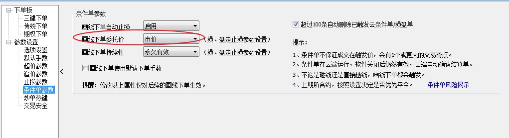 3888 委托价,画线下单满足条件触发后,软件会自动按照您设置的委托方式,发委托到交易所