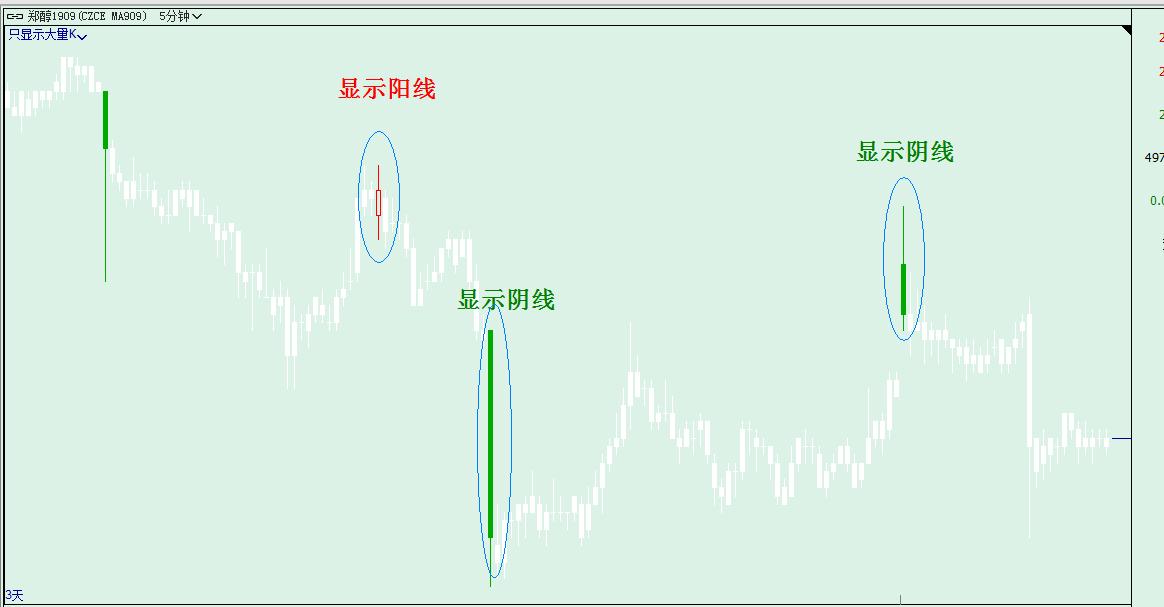 DRAWCOLORKLINE(ISDOWN&&C1,COLORCYAN,0);//收盘价小于开盘价,绘制青色实心K线