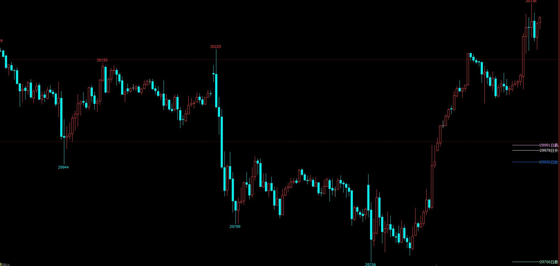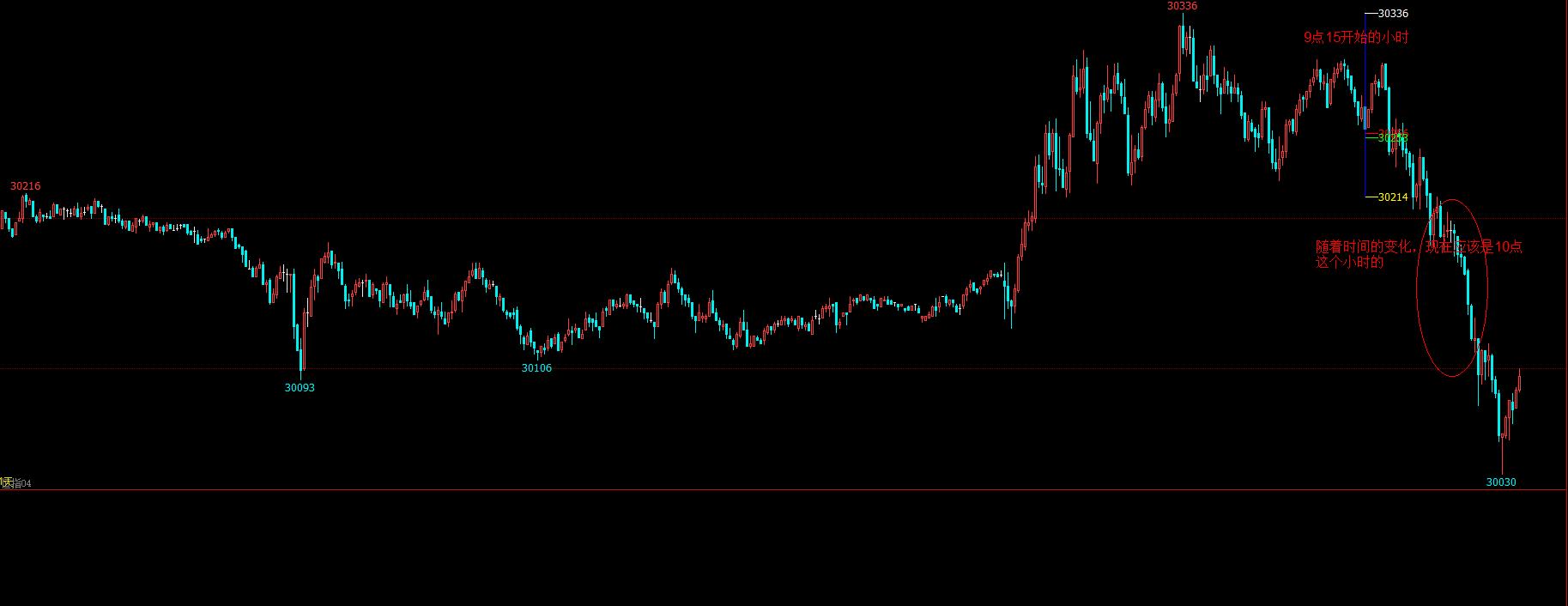 1.前一个小时的高开低收画5根K线左右的长度并标注价格