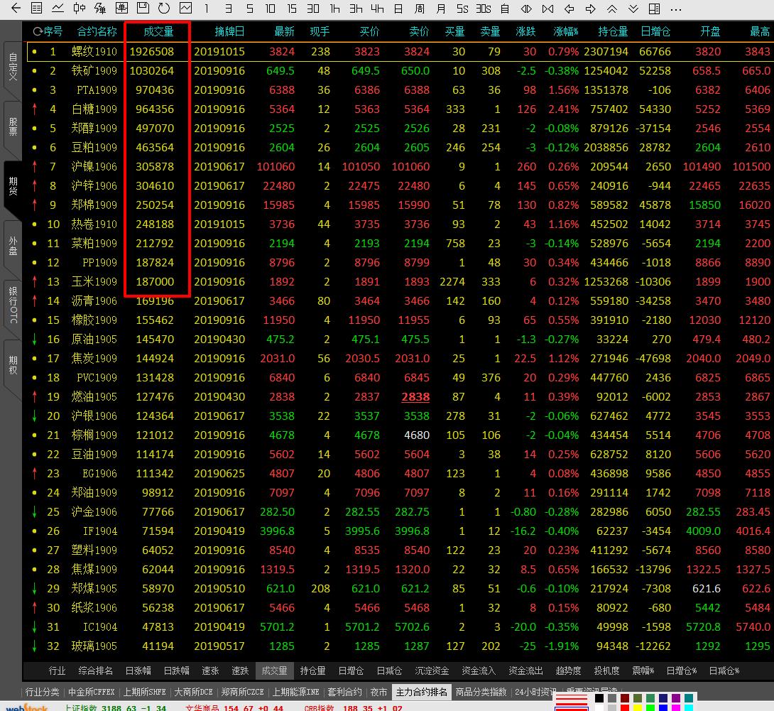 投资者咨询:按成交量 不能排序的问题 (文华财经WH6赢顺V6.7)