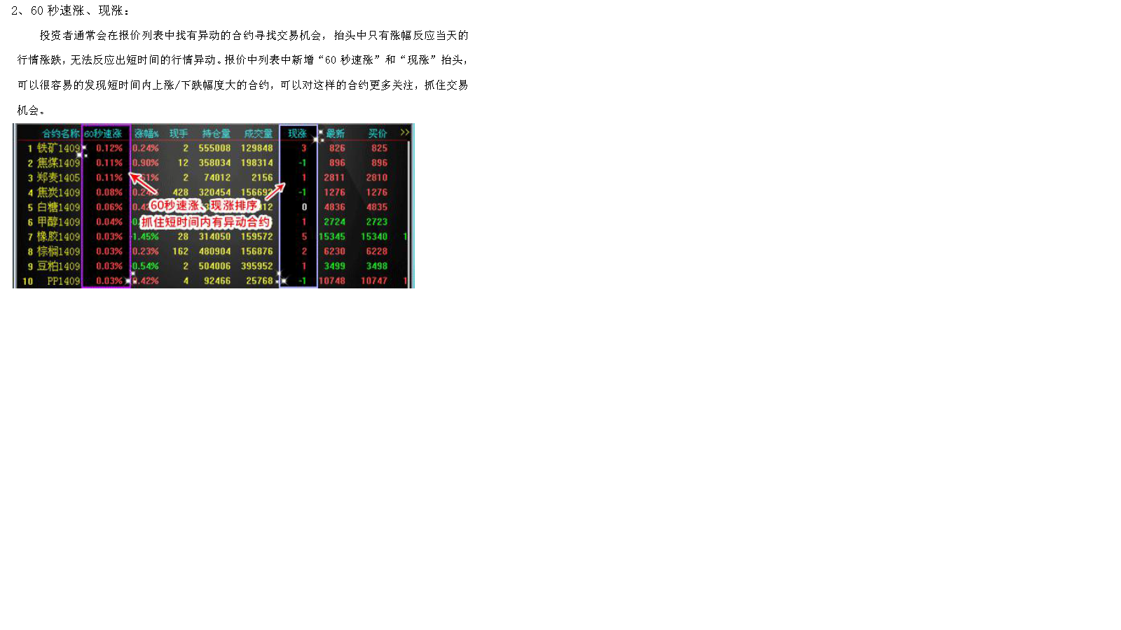 3.看说明书,60 秒速涨=(最新价- 前1 分钟最新价)/前1 分钟最新价,那么21:00:00-21:00:59之间的计算要参照昨收盘价吗?9:00:00-9:00:59要参照夜盘收盘价或昨收盘吗?